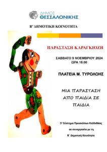 ΔημοσιεύσειςΆρθρο-ΑρχείοΠαράσταση Καραγκιόζη στην πλατεία Μ. Τυρολόης στις 9/11/2024 Άρθρο-Αρχείο Παράσταση Καραγκιόζη στην πλατεία Μ. Τυρολόης στις 9/11/2024 04/11/2024 13:19 FacebookTwitterLinkedinEmailΤυπώνωCopy URL ΤΕΛΕΥΤΑΙΕΣ ΑΝΑΡΤΗΣΕΙΣ Ανακοινώσεις Συναυλία «Χρήστος Ζώτος. Αφιέρωμα στον Δάσκαλο & δεξιοτέχνη του λαούτου» ΒΑΦΟΠΟΥΛΕΙΟ ΠΝΕΥΜΑΤΙΚΟ ΚΕΝΤΡΟ 13/10/2025 13:38 Europe Direct Το EUROPE DIRECT Θεσσαλονίκης στα σχολεία: Ελληνικό Κολλέγιο Θεσσαλονίκης 13/10/2025 12:11 Δελτία τύπου Η Δήμαρχος Κολωνίας στο Δημαρχείο Θεσσαλονίκης 13/10/2025 11:51 Προηγούμενο άρθροΠΑΓΚΟΣΜΙΑ ΗΜΕΡΑ ΚΑΤΑ ΤΟΥ ΔΙΑΒΗΤΗΕπόμενο άρθροΠροκήρυξη θέσεων για τη χριστουγεννιάτικη αγορά του Δήμου Θεσσαλονίκης