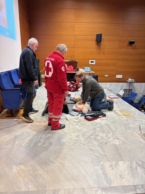 Στο ίδιο πλαίσιο, πραγματοποιήθηκε την Τρίτη 31 Μαρτίου εκπαίδευση Πρώτων Βοηθειών από τον Ελληνικό Ερυθρό Σταυρό σε όλους τους γυμναστές των δημοτικών γυμναστηρίων, με στόχο την περαιτέρω ενίσχυση της επιχειρησιακής ετοιμότητας του ανθρώπινου δυναμικού του Δήμου.