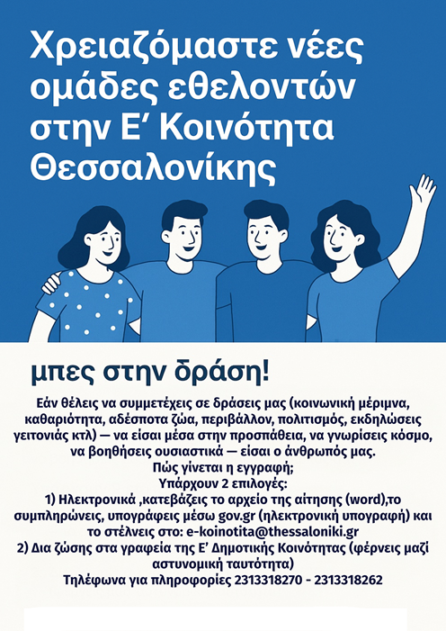 Η Ε’ Κοινότητα ανοίγει το κάλεσμα για νέες ομάδες εθελοντών.