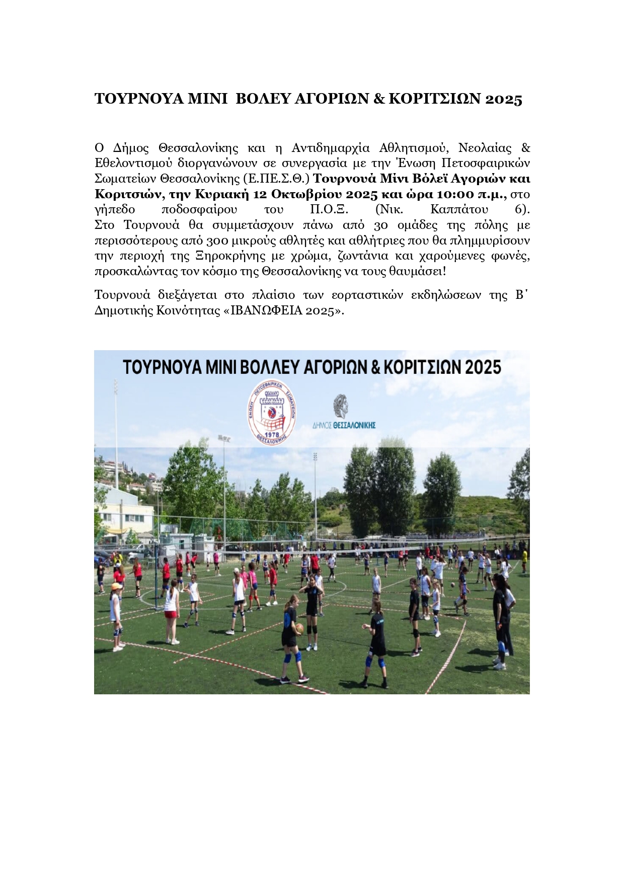 ΔημοσιεύσειςΑνακοινώσειςΑνακοινώσεις Β' Δημοτικής ΚοινότηταςΙΒΑΝΩΦΕΙΑ ΤΟΥΡΝΟΥΑ ΜΙΝΙ ΒΟΛΕΪ ΑΓΟΡΙΩΝ & ΚΟΡΙΤΣΙΩΝ - ΑΝΤΙΔΗΜΑΡΧΙΑ ΝΕΟΛΑΙΑΣ & ΕΘΕΛΟΝΤΙΣΜΟΥ Ανακοινώσεις Β' Δημοτικής Κοινότητας ΙΒΑΝΩΦΕΙΑ ΤΟΥΡΝΟΥΑ ΜΙΝΙ ΒΟΛΕΪ ΑΓΟΡΙΩΝ & ΚΟΡΙΤΣΙΩΝ – ΑΝΤΙΔΗΜΑΡΧΙΑ ΝΕΟΛΑΙΑΣ & ΕΘΕΛΟΝΤΙΣΜΟΥ 10/10/2025 09:22 ΙΒΑΝΩΦΕΙΑ ΤΟΥΡΝΟΥΑ ΜΙΝΙ ΒΟΛΕΪ ΑΓΟΡΙΩΝ & ΚΟΡΙΤΣΙΩΝ – ΑΝΤΙΔΗΜΑΡΧΙΑ ΝΕΟΛΑΙΑΣ & ΕΘΕΛΟΝΤΙΣΜΟΥ. FacebookTwitterLinkedinEmailΤυπώνωCopy URL ΤΕΛΕΥΤΑΙΕΣ ΑΝΑΡΤΗΣΕΙΣ Δημοτική Επιτροπή 45η ΤΑΚΤΙΚΗ ΣΥΝΕΔΡΙΑΣΗ 15-10-2025 10/10/2025 15:37 Ανακοινώσεις ΚΕΝΤΡΟ ΚΟΙΝΟΤΗΤΑΣ ΔΗΜΟΥ ΘΕΣΣΑΛΟΝΙΚΗΣ 10/10/2025 14:29 Προκηρύξεις και Διακηρύξεις Πρόσκληση Εκδήλωσης Ενδιαφέροντος – Απευθείας Ανάθεση, που αφορά στην «ΑΝΑΘΕΣΗ ΥΠΗΡΕΣΙΩΝ ΤΡΟΦΟΔΟΣΙΑΣ (CATERING) ΤΩΝ ΥΠΗΡΕΣΙΩΝ ΤΟΥ ΔΗΜΟΥ ΘΕΣΣΑΛΟΝΙΚΗΣ ΕΤΟΥΣ 2025» π.δ. 22.541,99€ συμπεριλαμβανομένου ΦΠΑ... 10/10/2025 13:46 Προηγούμενο άρθροΠΡΟΣΚΛΗΣΗ – ΠΡΟΓΡΑΜΜΑ ΕΚΔΗΛΩΣΕΩΝ ΙΒΑΝΩΦΕΙΑ 2025Επόμενο άρθροΚΕΝΤΡΟ ΚΟΙΝΟΤΗΤΑΣ ΔΗΜΟΥ ΘΕΣΣΑΛΟΝΙΚΗΣ