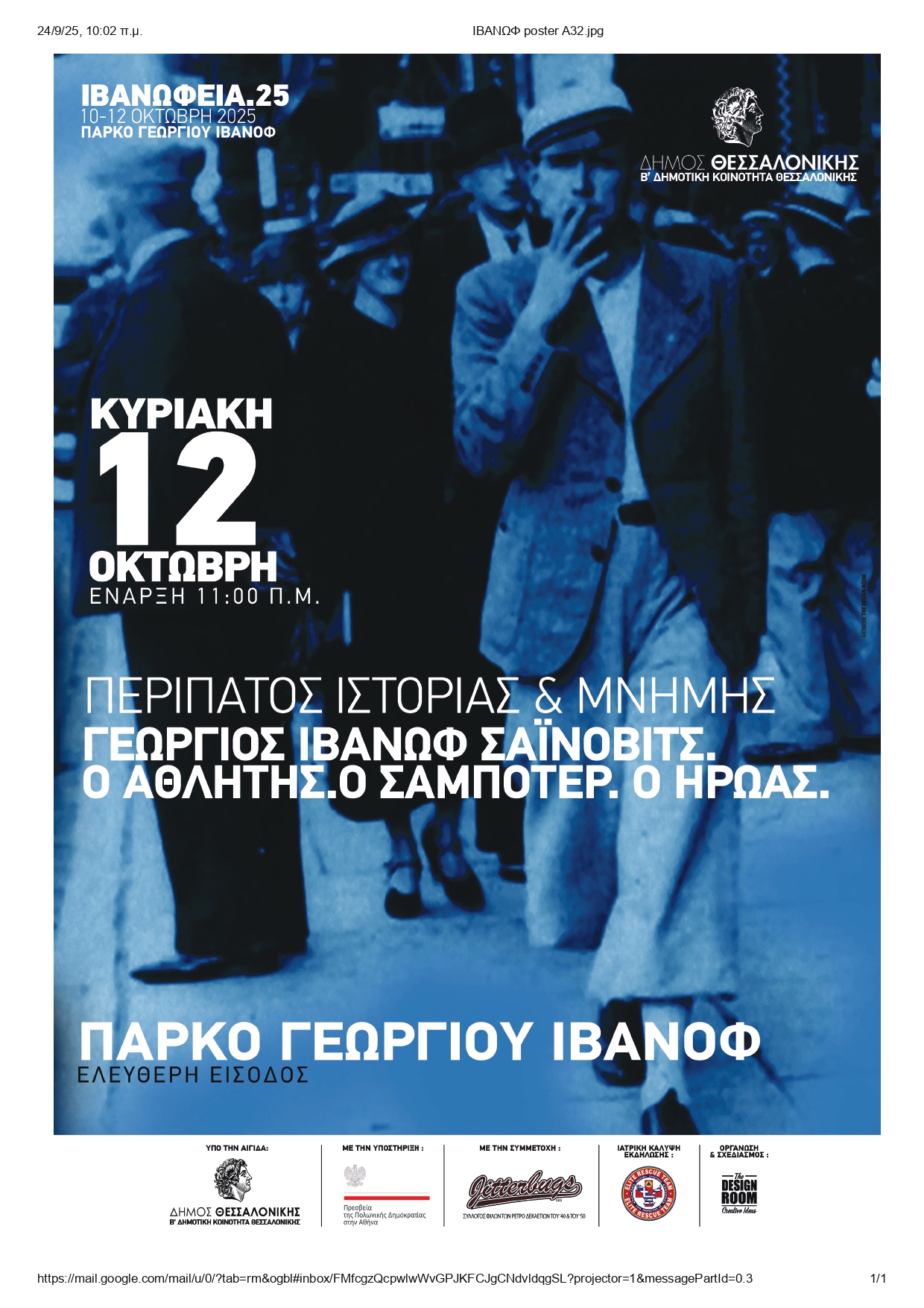 11.15 Διαδραστικός Περίπατος Ιστορίας & Μνήμης «Γεώργιος Ιβάνωφ. Ο Αθλητής. Ο Σαμποτέρ. Ο Ήρωας»