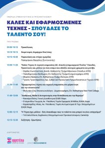 ημερίδα με θέμα: “Καλές και Εφαρμοσμένες Τέχνες – Σπούδασε το Ταλέντο σου” την Πέμπτη 08 Μαίου 2025 ώρα 10:00 π.μ στην Αίθουσα Μ. Αναγνωστάκη.