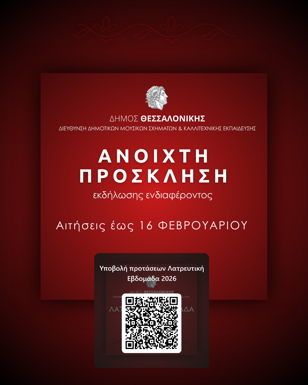 Ο Δήμος Θεσσαλονίκης και η Διεύθυνση Δημοτικών Μουσικών Σχημάτων & Καλλιτεχνικής Εκπαίδευσης ανακοινώνουν την έναρξη του Open Call για τη «Λατρευτική Εβδομάδα 2026».