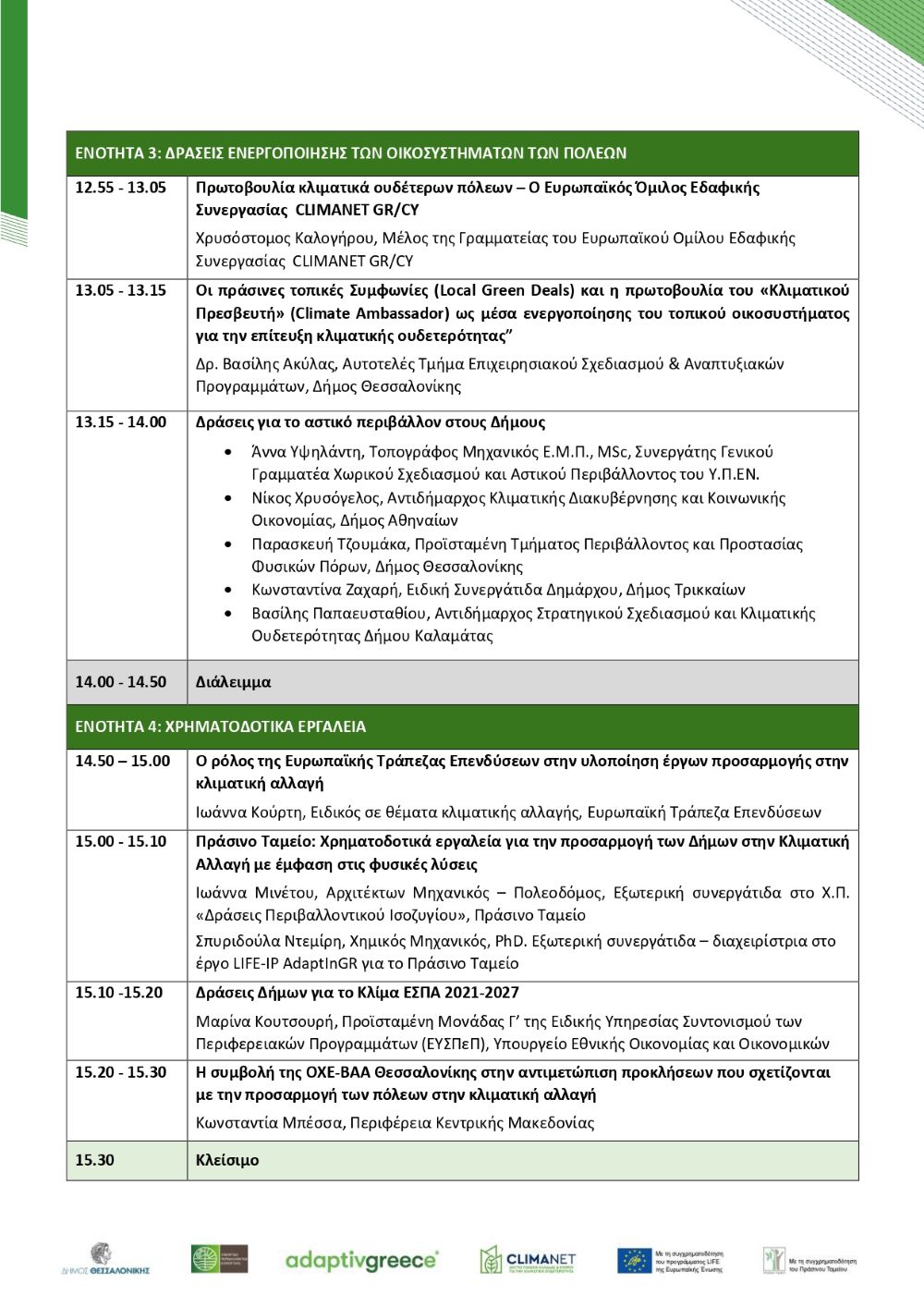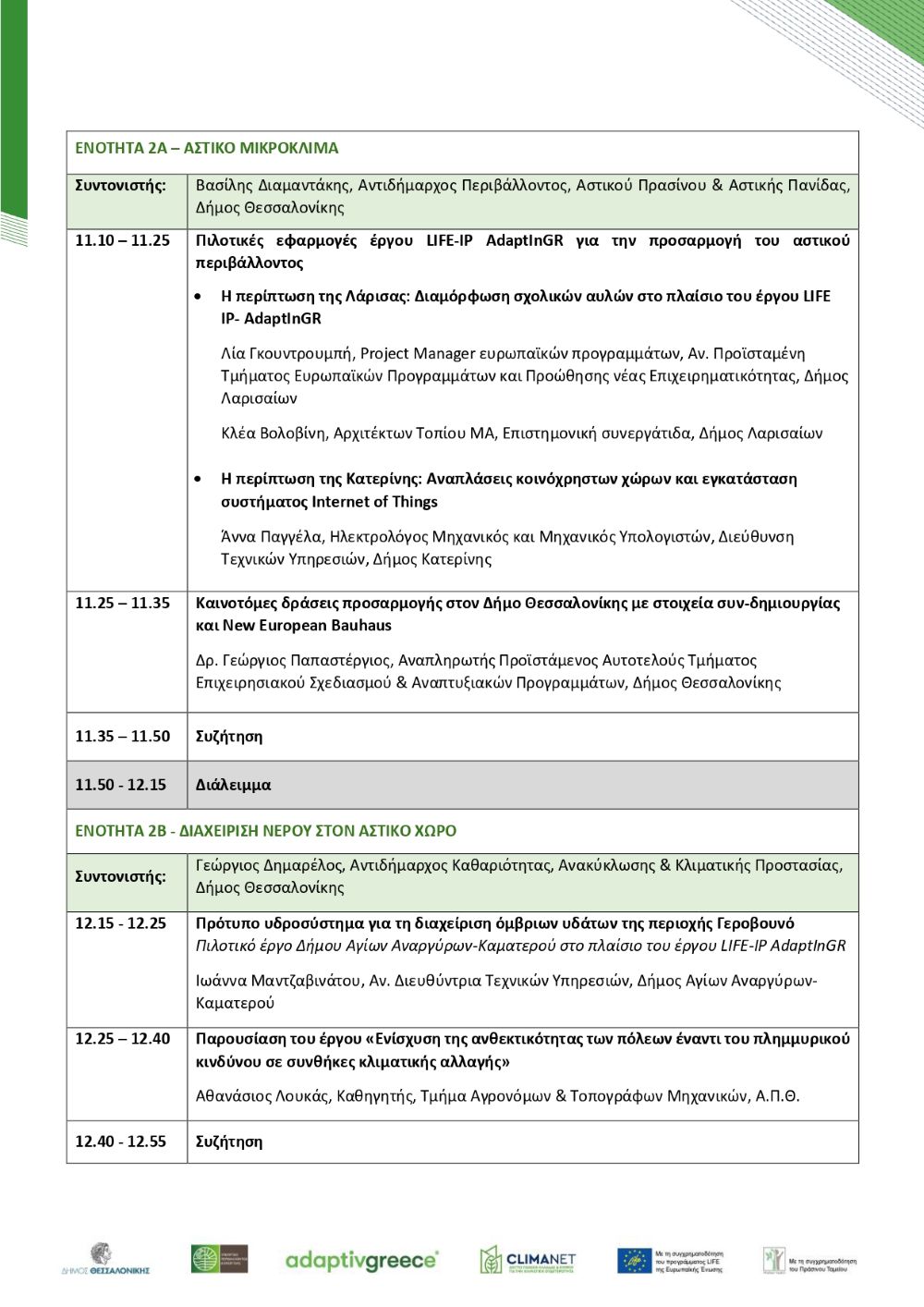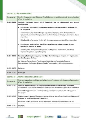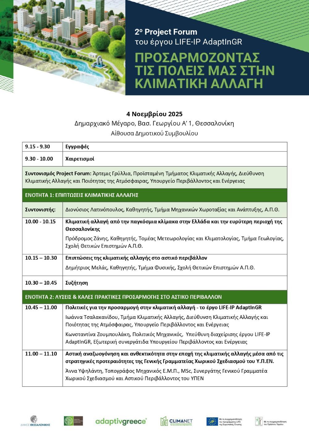 Ο Δήμος Θεσσαλονίκης και το Υπουργείο Περιβάλλοντος και Ενέργειας (Διεύθυνση Κλιματικής Αλλαγής και Ποιότητας της Ατμόσφαιρας) συνδιοργανώνουν Project Forum με τίτλο «Προσαρμόζοντας τις πόλεις μας στην κλιματική αλλαγή», στο πλαίσιο του έργου LIFE-IP AdaptInGR.