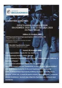 Ο Δήμος Θεσσαλονίκης και η Β΄Δημοτική Κοινότητα θα διοργανώσουν για 2η συνεχή χρονιά, τις εκδηλώσεις ”ΙΒΑΝΩΦΕΙΑ & ΦΕΣΤΙΒΑΛ ΠΑΡΑΔΟΣΙΑΚΩΝ ΧΟΡΩΝ 2025” στο πάρκο Ιβάνωφ (οδός Λαγκαδά – Αγ. Νέστορος) στις 11 και 12 Οκτωβρίου 2025. Κατά την διάρκεια των εκδηλώσεων θα πραγματοποιηθούν διάφορες δράσεις.