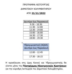 ΔημοσιεύσειςΔιεύθυνση ΠαιδείαςΑθλητισμόςΠρόγραμμα λειτουργίας Δημοτικού Κολυμβητηρίου από 21/11/2022 ΑθλητισμόςΑνακοινώσεις Πρόγραμμα λειτουργίας Δημοτικού Κολυμβητηρίου από 21/11/2022 15/11/2022 11:08 FacebookTwitterLinkedinEmailΤυπώνωCopy URL ΤΕΛΕΥΤΑΙΕΣ ΑΝΑΡΤΗΣΕΙΣ Ανακοινώσεις Συναυλία «Χρήστος Ζώτος. Αφιέρωμα στον Δάσκαλο & δεξιοτέχνη του λαούτου» ΒΑΦΟΠΟΥΛΕΙΟ ΠΝΕΥΜΑΤΙΚΟ ΚΕΝΤΡΟ 13/10/2025 13:38 Europe Direct Το EUROPE DIRECT Θεσσαλονίκης στα σχολεία: Ελληνικό Κολλέγιο Θεσσαλονίκης 13/10/2025 12:11 Δελτία τύπου Η Δήμαρχος Κολωνίας στο Δημαρχείο Θεσσαλονίκης 13/10/2025 11:51 Προηγούμενο άρθροΠΑΓΚΟΣΜΙΑ ΗΜΕΡΑ ΚΑΤΑ ΤΟΥ ΔΙΑΒΗΤΗΕπόμενο άρθροΨάχνεις για δουλειά στη Θεσσαλονίκη; Ο Δήμος Θεσσαλονίκης παρουσιάζει στο #JobFestival 2022 την «Πλατφόρμα Αναζήτησης Προσφοράς Εργασίας»