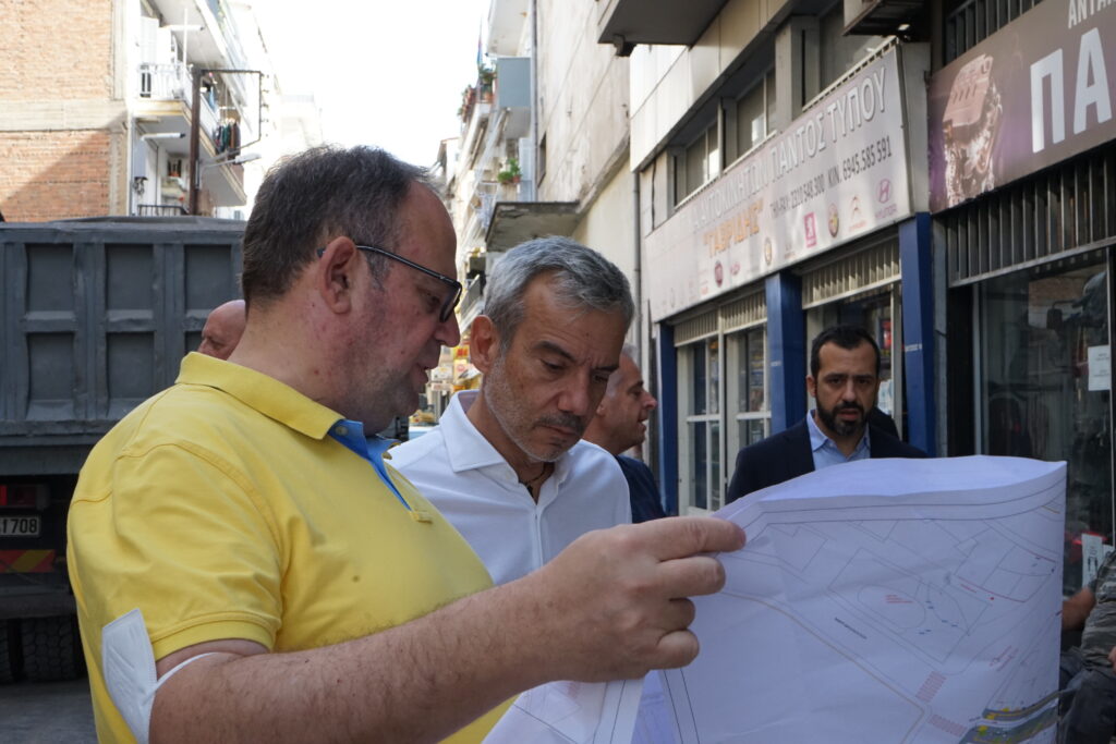 Την περιοχή όπου εξελίσσονται τα έργα επισκέφθηκε σήμερα (15/9) ο Δήμαρχος Θεσσαλονίκης Κωνσταντίνος Ζέρβας μαζί με τον Αντιδήμαρχο Τεχνικών Έργων και Βιώσιμης Κινητικότητας Εφραίμ Κυριζίδη και τον τεχνικό σύμβουλο Δημήτρη Μήτρου.