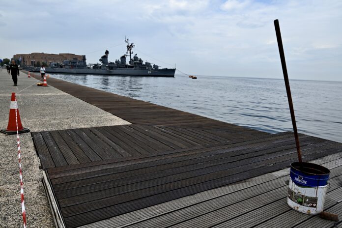 Τα έργα συντήρησης στη νέα παραλία συνεχίζονται αυτές τις ημέρες με τη βαφή του ξύλινου ντεκ. Σήμερα τα συνεργεία ήταν εγκατεστημένα στο ύψος της νέας παραλίας όπου βρίσκεται αγκυροβολημένο το ιστορικό αντιτορπιλικό του Πολεμικού Ναυτικού «ΒΕΛΟΣ».