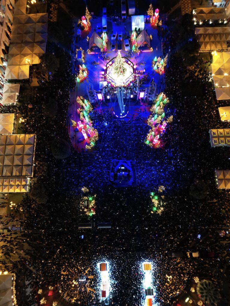 Ο Δήμαρχος Θεσσαλονίκης, που πάτησε το κουμπί, για να ανάψει το δέντρο μαζί με τη μικρή Μαργαρίτα και τον μικρό Διαμαντή, μετέφερε θερμές ευχές για καλές γιορτές και εξέφρασε τις ευχαριστίες του προς τους εργαζόμενους του Δήμου αλλά και προς τους χορηγούς που υποστηρίζουν τις εορταστικές εκδηλώσεις.