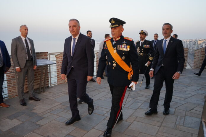 Τιμές απέδωσαν η μπάντα του Πολεμικού Ναυτικού και άγημα της ΣΣΑΣ, ενώ από τη φρεγάτα «ΣΠΕΤΣΑΙ», που είχε αγκυροβολήσει στο λιμάνι της Θεσσαλονίκης, πραγματοποιήθηκαν χαιρετιστήριες βολές.