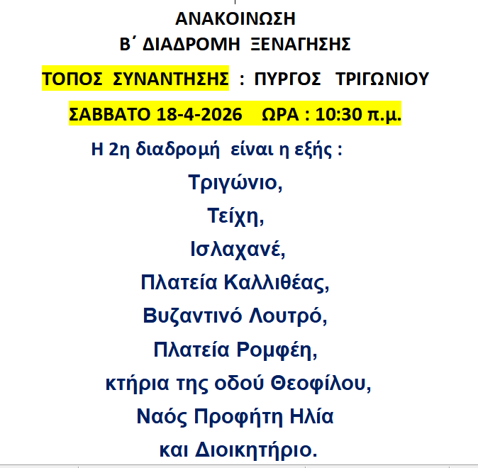 Β΄ΔΩΡΕΑΝ ΞΕΝΑΓΗΣΗ ΣΤΗΝ Γ΄ΚΟΙΝΟΤΗΤΑ , ΣΑΒΒΑΤΟ 18-4-2026, ΩΡΑ 10:30 ΕΩΣ 13:30