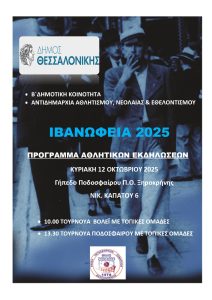 Σα11Οκτ(Οκτ 11)7:00 μμΚυ12(Οκτ 12)9:00 μμΠΡΟΣΚΛΗΣΗ - ΠΡΟΓΡΑΜΜΑ ΕΚΔΗΛΩΣΕΩΝ ΙΒΑΝΩΦΕΙΑ 2025