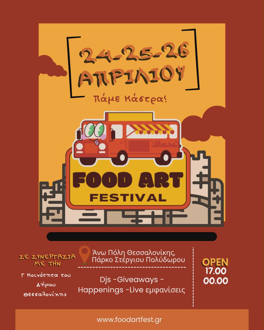 FOOD ART FESTIVAL , στις 24, 25 και 26 Απριλίου 2026, στην Πλατεία Στέργιου Πολυδώρου , στην Άνω Πόλη.