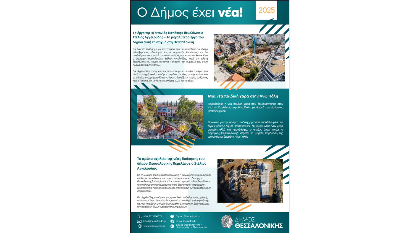 Στην ενότητα αυτή μπορείτε να δείτε όλα τα μηνιαία ενημερωτικά δελτία (newsletter) του Δήμου με νέα, ανακοινώσεις και δράσεις