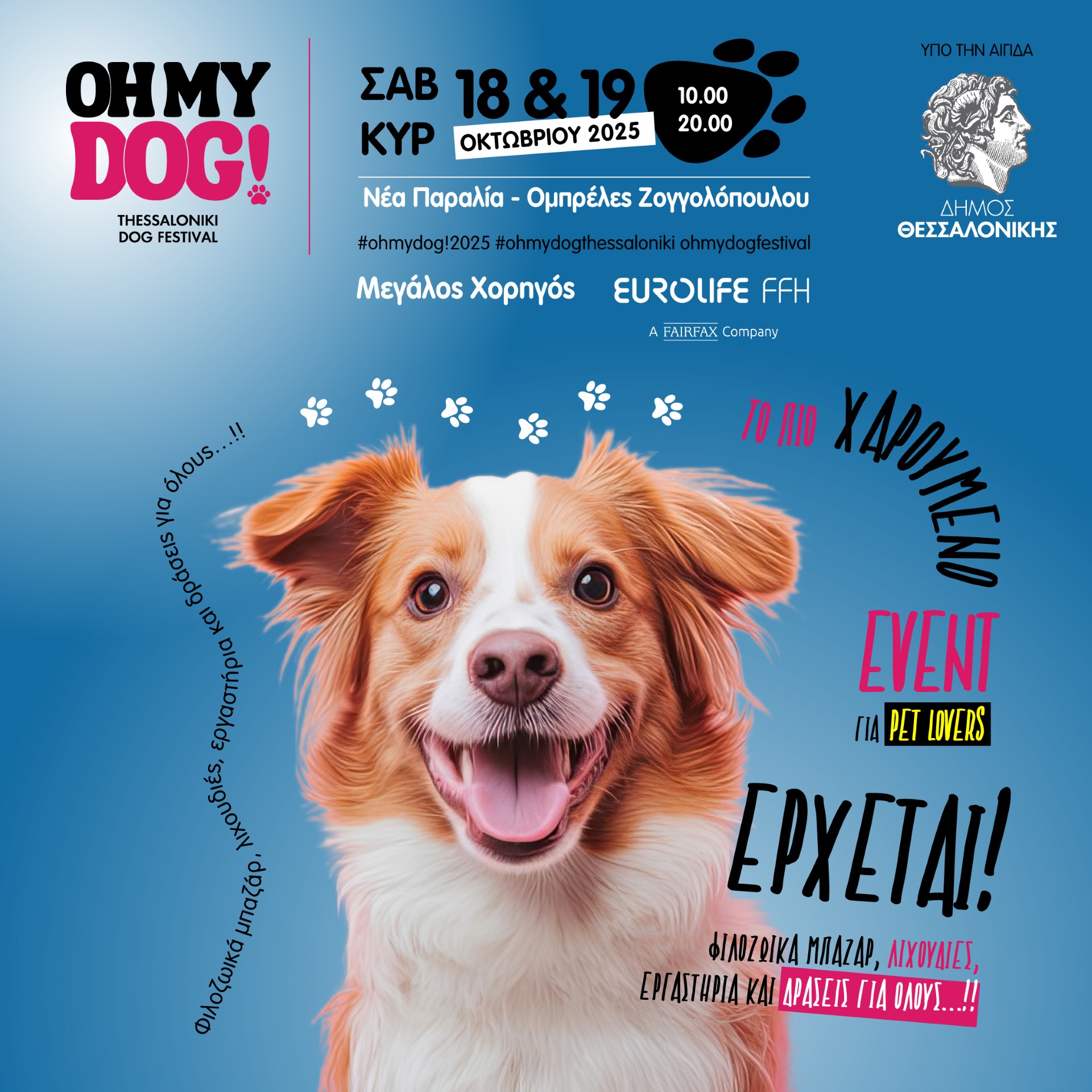 Στη Θεσσαλονίκη έρχεται για πρώτη φορά στις 18 & 19 Οκτωβρίου, με συνδιοργανωτή τον Δήμο Θεσσαλονίκης, το «Oh My Dog Thessaloniki», το μεγάλο φεστιβάλ που αφορά τα αγαπημένα κατοικίδια μας.