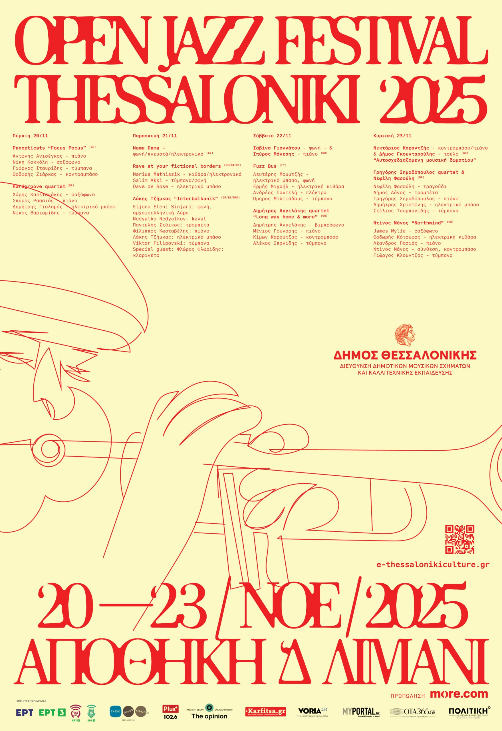 Tο “Open Jazz Festival” έρχεται στην Αποθήκη Δ’ στο Λιμάνι της Θεσσαλονίκης, (Πύλη Α΄) από την Πέμπτη 20 έως και την Κυριακή 23 Νοεμβρίου 2025!