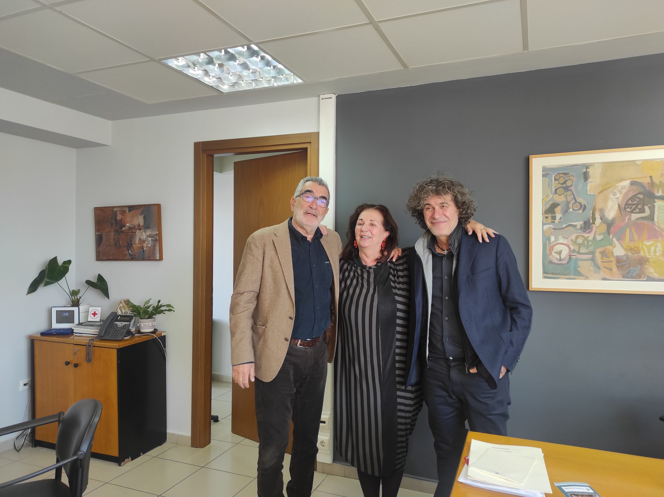 Ο Αντιδήμαρχος Οικονομικού Προγραμματισμού και Δημοτικής Περιουσίας πλέον, κ. Ευθύμιος Χατζηθεόκλητος παραδίδει την σκυτάλη της Αντιδημαρχίας Κοινωνικής Πολιτικής, Αλληλεγγύης και Δημόσιας Υγείας, στον κ. Δημήτρη Σκούτα. Μαζί τους η κ. Θεοδώρα Λειψιστινού Θεοδώρα, η οποία αναλαμβάνει Εντεταλμένη Δημοτική Σύμβουλος για δράσεις που αφορούν στην Ισότητα, την Κοινωνική Αλληλεγγύη και τη Συμπερίληψη.