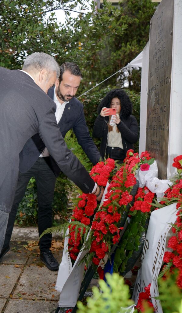Στεφάνι στο μνημείο του Πολυτεχνείου, στο Αριστοτέλειο Πανεπιστήμιο Θεσσαλονίκης, κατέθεσε σήμερα (17/11) το πρωί ο Δήμαρχος Θεσσαλονίκης Κωνσταντίνος Ζέρβας, συνοδευόμενος από τον Πρόεδρο του Δημοτικού Συμβουλίου Πέτρο Λεκάκη.