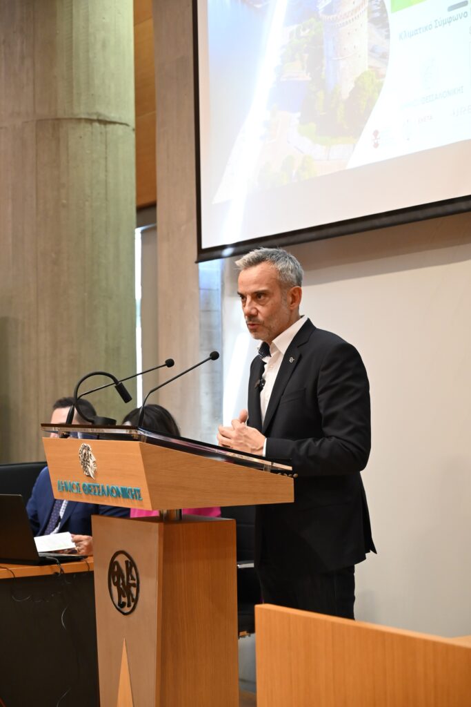 «H Θεσσαλονίκη μαζί με ακόμα 99 πόλεις της Ευρώπης έχει βάλει έναν πολύ υψηλό στόχο: να πετύχει κλιματική ουδετερότητα μέχρι το 2030. Είναι ιδιαίτερα σημαντικό το ότι υπάρχει ένα ευρωπαϊκό ‘εμείς’, μια κοινή αίσθηση κλιματικού κινδύνου για τις επόμενες γενιές», σημείωσε από την πλευρά του ο Αντιδήμαρχος Ηλεκτρονικής Διακυβέρνησης του Δήμου Θεσσαλονίκης Μιχάλης Κούπκας. «Κατανοούμε πλήρως ότι θα πρέπει να αποφασίσουμε άμεσα να αντιμετωπίσουμε την κλιματική πρόκληση. Μόνο έτσι -πιστεύουμε- μπορούμε να επιβραδύνουμε σημαντικά τον ρυθμό της κλιματικής αλλαγής, δίνοντας σε όλους τον εύθετο χρόνο, για να αναπτύξουμε τους μηχανισμούς και την απαραίτητη τεχνολογία με αντιμετωπίσιμο κόστος. Αν από την άλλη κλείσουμε τα μάτια, ελπίζοντας στο θαύμα, τότε το τίμημα του λογαριασμού θα είναι δυσβάστακτο. Και το χειρότερο: θα κληθούν να τον πληρώσουν τα παιδιά μας. Το κλιματικό σύμφωνο που υπογράφουμε σήμερα είναι μια ρητή συμφωνία ευθύνης που σχετίζεται με ένα μέλλον βιώσιμο», υπογράμμισε ο κ. Κούπκας.