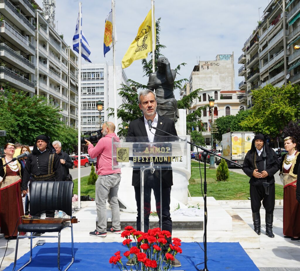 Στον χαιρετισμό του ο Δήμαρχος Θεσσαλονίκης υπογράμμισε ότι «η 19η Μαΐου είναι για όλους τους Έλληνες μια πολύ βαριά μέρα, κατά την οποία τιμούμε 353.000 Έλληνες του Πόντου που σφαγιάστηκαν» και επισήμανε ότι «σε κάθε γωνιά της Ελλάδας, αλλά ιδιαίτερα στη Μακεδονία, βιώνουμε έναν εσωτερικό θρήνο».